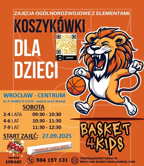 Bezpłatne zajęcia ogólnorozwojowe z elementami koszykówki dla dzieci od 2 roku życia