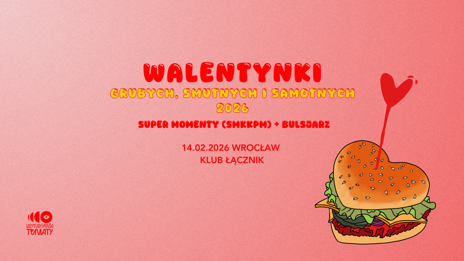 Zapraszamy na Walentynki Grubych, Smutnych i Samotnych – legendarną imprezę dla wszystkich zakochanych, potrzebujących miłości oraz tych, którzy chcą wyśmiać walentynki wszech czasów. Nie spędzaj wieczoru nudnie w kinie ani nie przepłacaj za kolację – to święto absolutnie dla każdego!