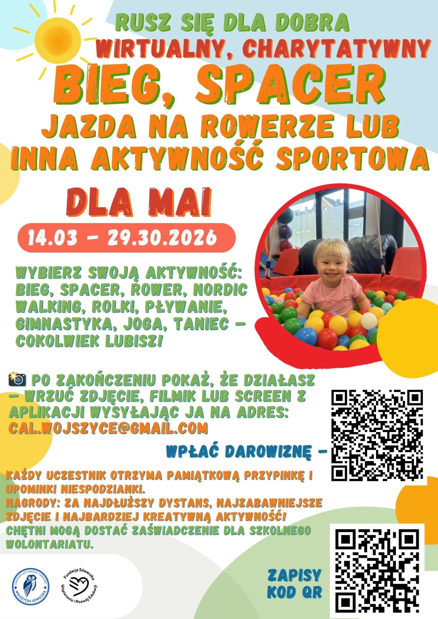 Wirtualny, charytatywny BIEG, spacer, jazda na rowerze itp dla 3,5 letniej Mai z Wojszyc