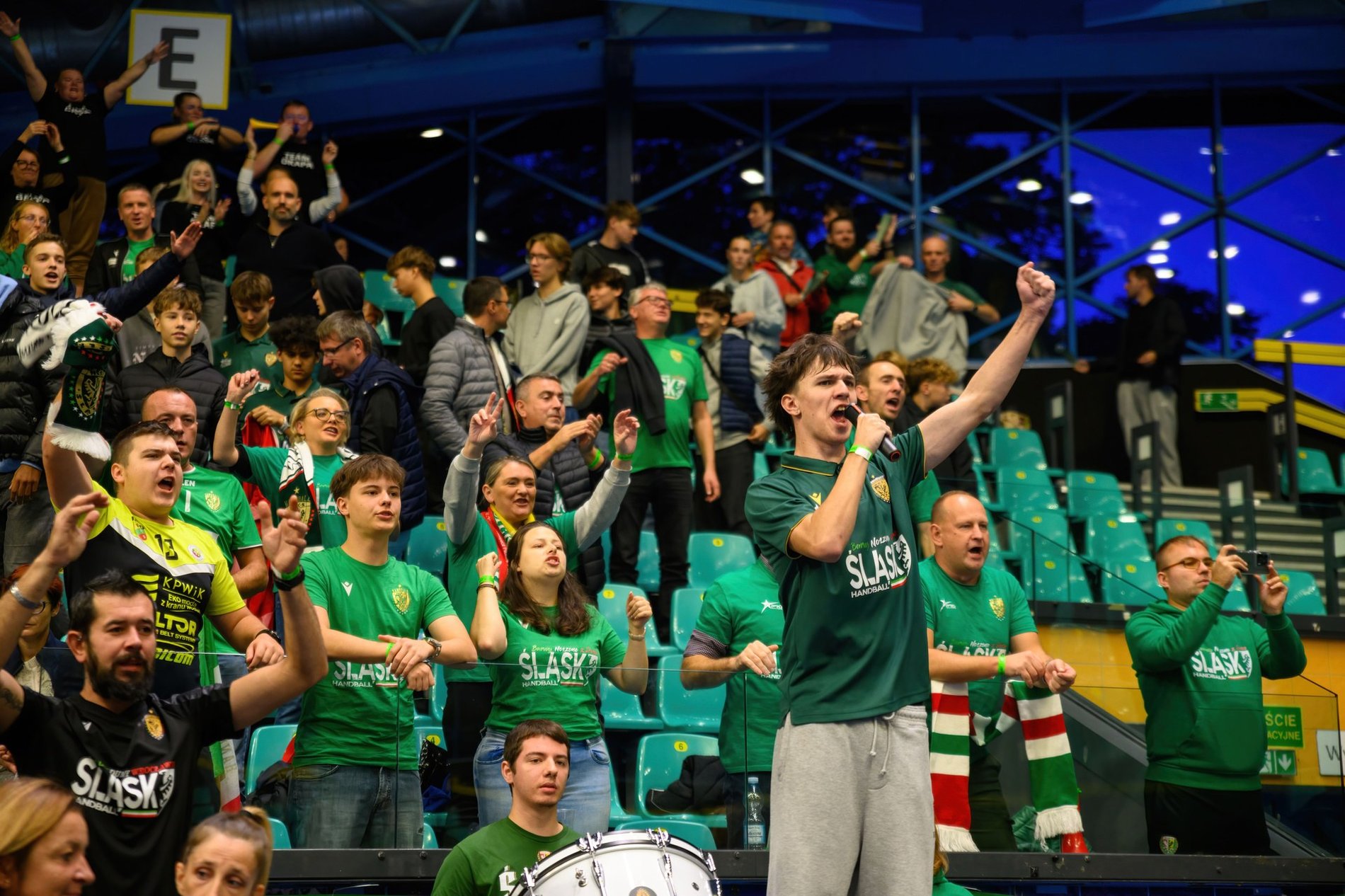 Kibice Śląska dopingujący piłkarzy ręcznych w  hali Orbita fot. materiały prasowe
